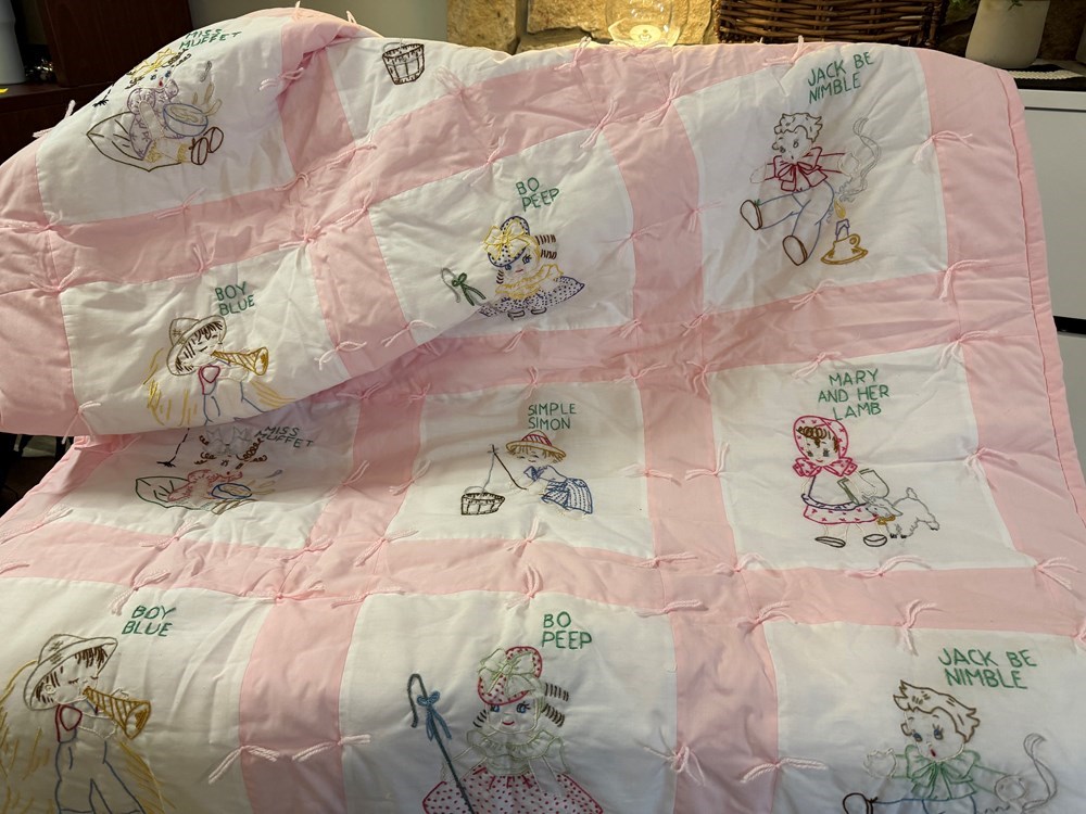 Hand-Quilted Nursery Rhyme Baby Blanket Dimensions: 42"x54 1/2"