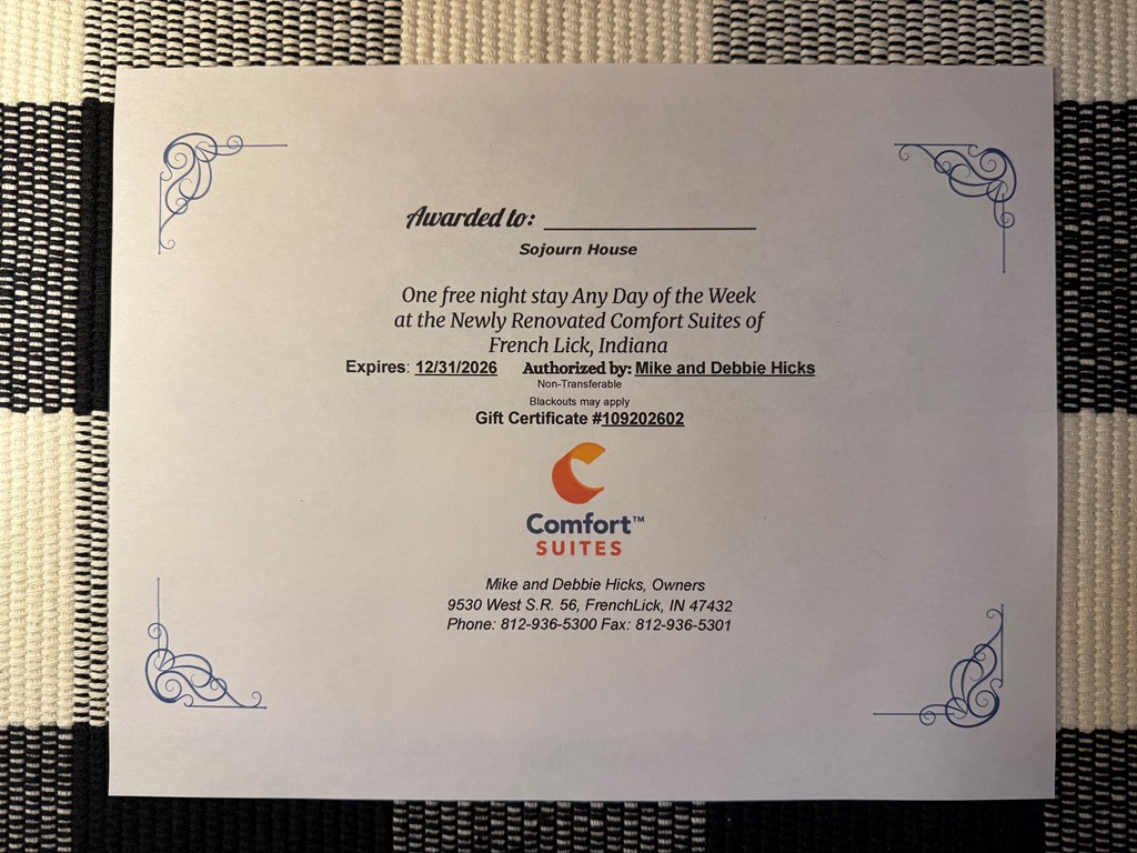 A note from Sojourn House: Thank you for shopping Sojourn House's 6th Annual Virtual Silent Auction! We have some great items available for you to bid on from small businesses, gift baskets, vacation packages, and so much more! All funds raised from this auction will go directly to helping Sojourn House pursue its mission to defend, restore, and liberate women who have been trafficked and/or exploited. Sojourn House has worked with over 150 women in the Central Indiana area, providing trafficking awareness and preventative education (in vulnerable areas in the community as well as in the jail), referral and assistance to and from rehab facilities and appointments, life skills classes (i.e. budgeting, healthy boundaries, etc.), as well as working with women in our residential program. Our residents walk through a two year program to find healing, freedom, education, and the life skills necessary to graduate with a sustainable path forward. Thank you for supporting Sojourn House by shopping our auction! We hope you find some great things while also helping women find freedom and healing!