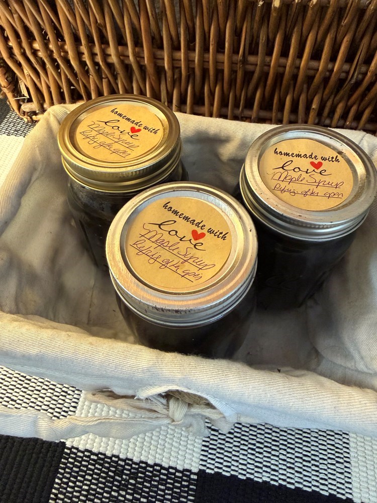 Enjoy 3 jars of homegrown, homemade maple syrup!