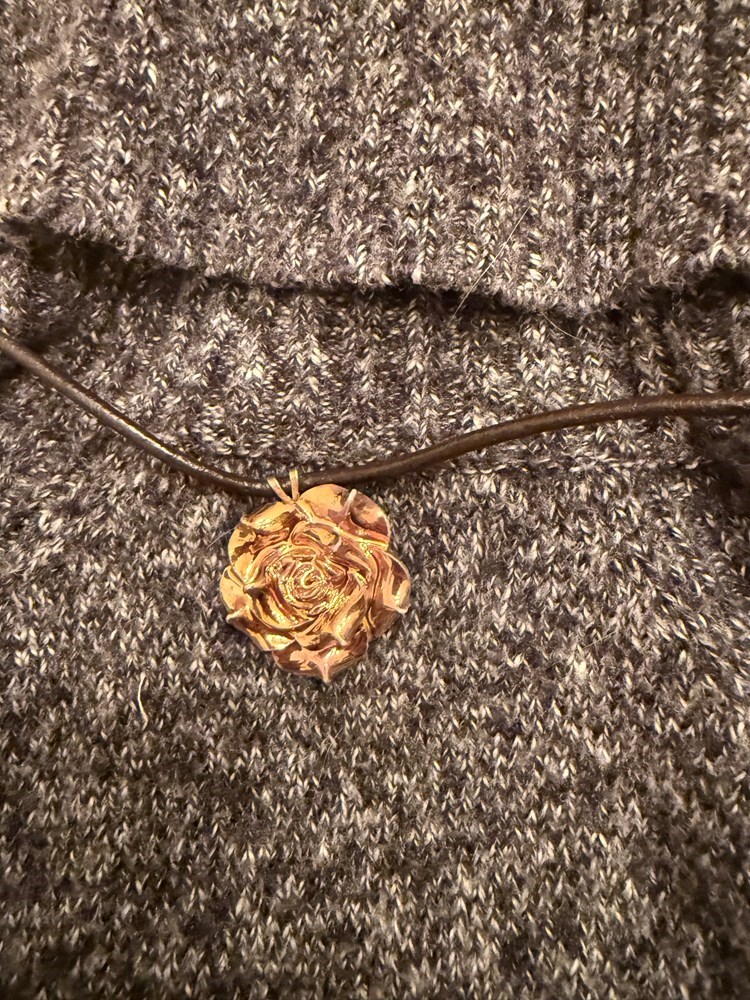 Porcelain Rose Pendants on 18" leather cords: 22 kt Gold