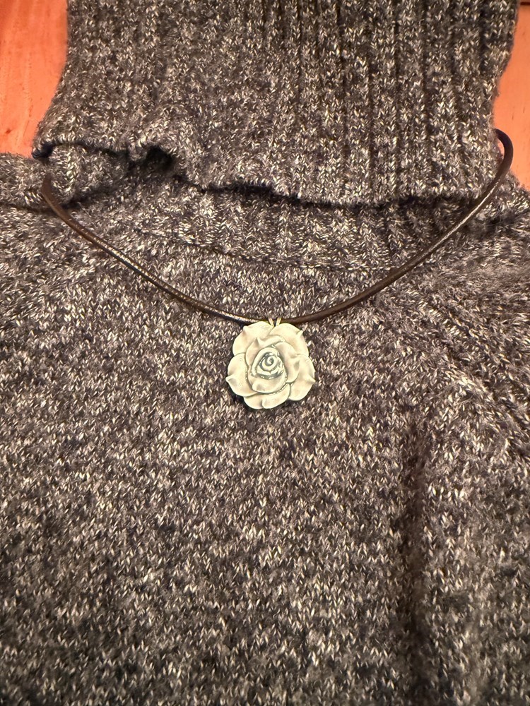 Porcelain Rose Pendants on 18" leather cords: Blue Artist Bio: Hilary Estelean is a Bloomington artist who makes heirloom ceramics for everyday life.